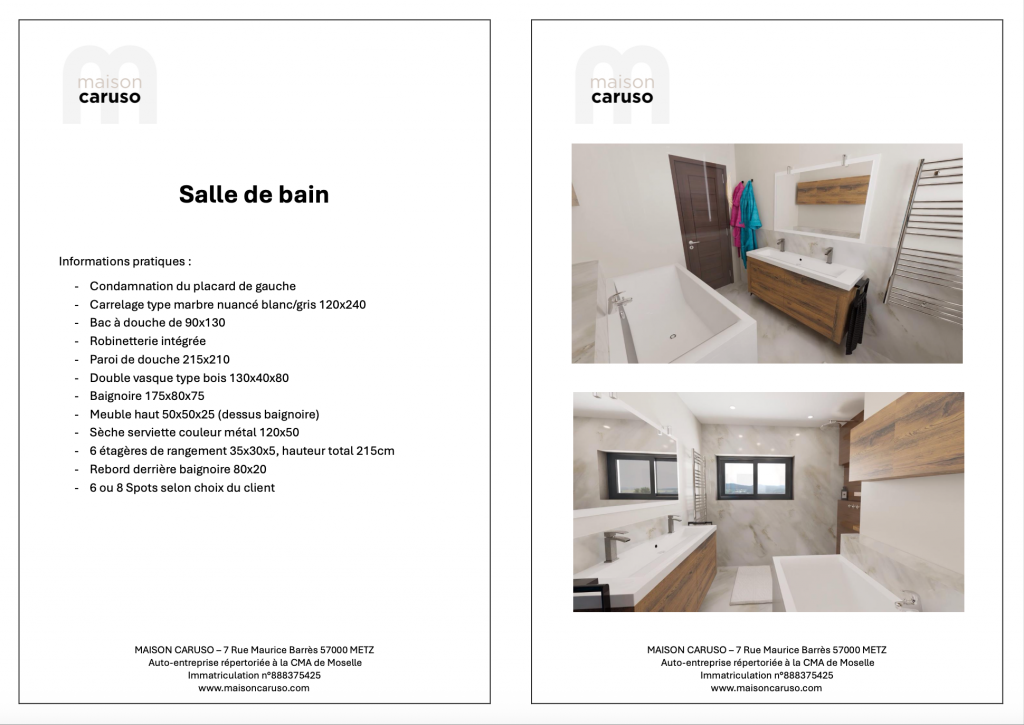 - Différentes propositions de coloris, grandeur du carrelage, peinture, mobilier..