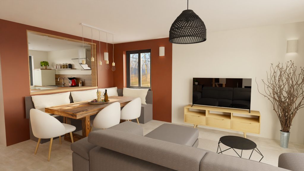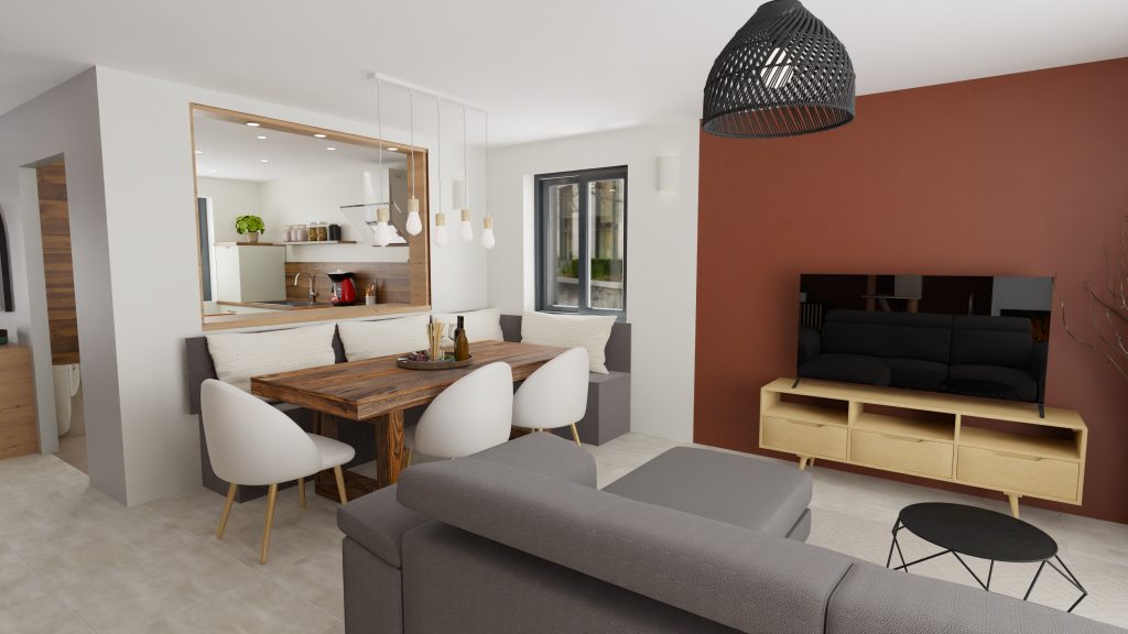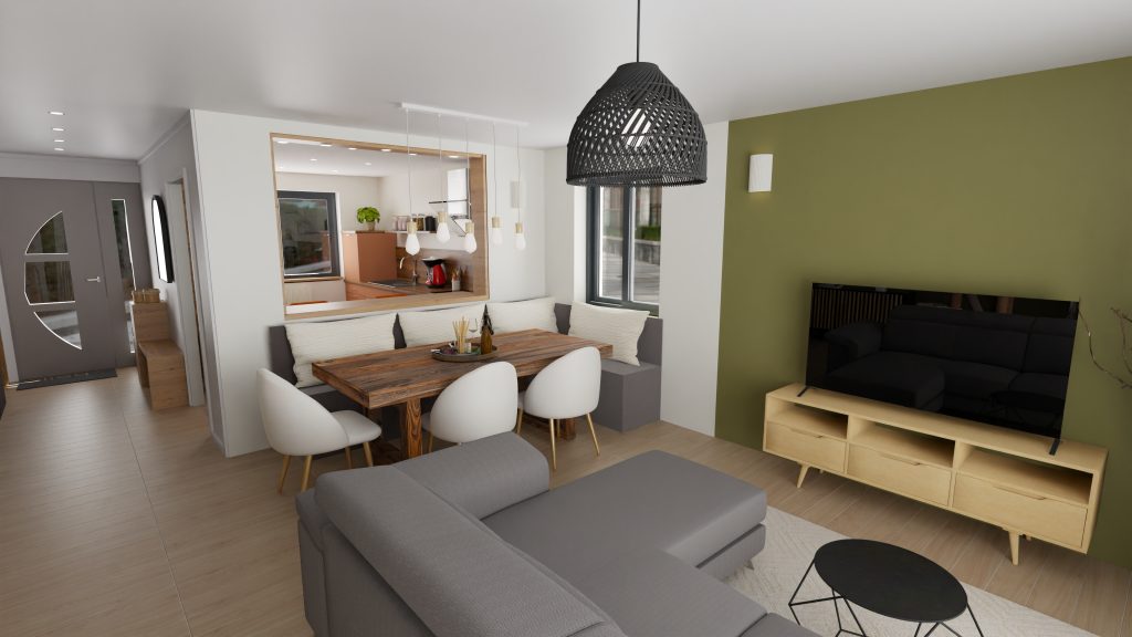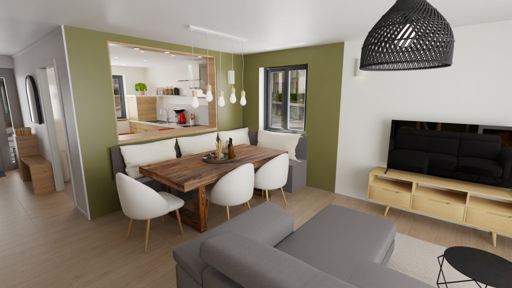 - Délimitation de la salle à manger par la couleur des murs