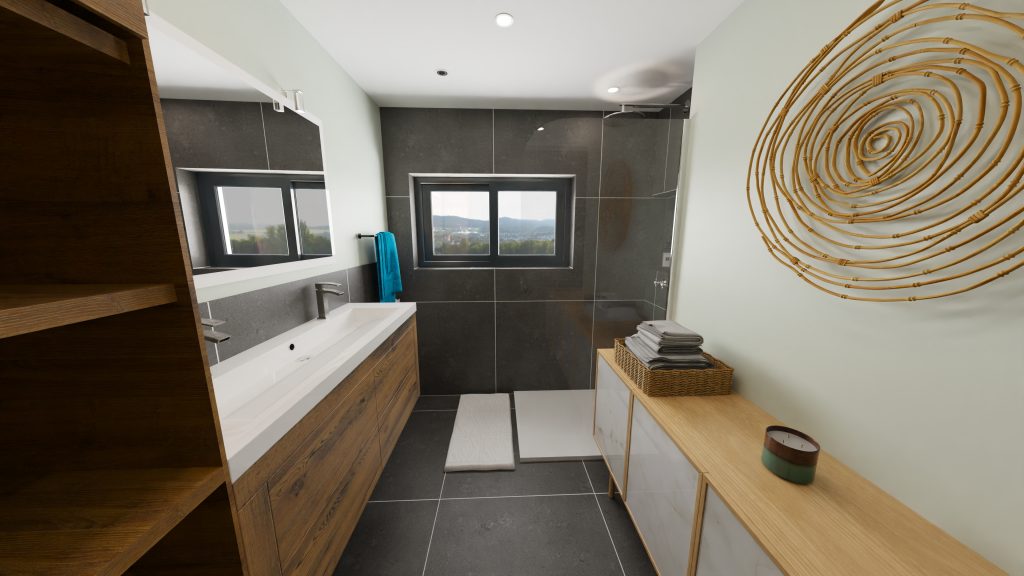 Tous les projets sont élaborés avec des projections 3D, puis retravailler au fur et à mesure avec le client jusqu’à satisfaction. Les objets présents sur les projections sont des idées de modèles ; tout est évolutif selon les envies du clients.